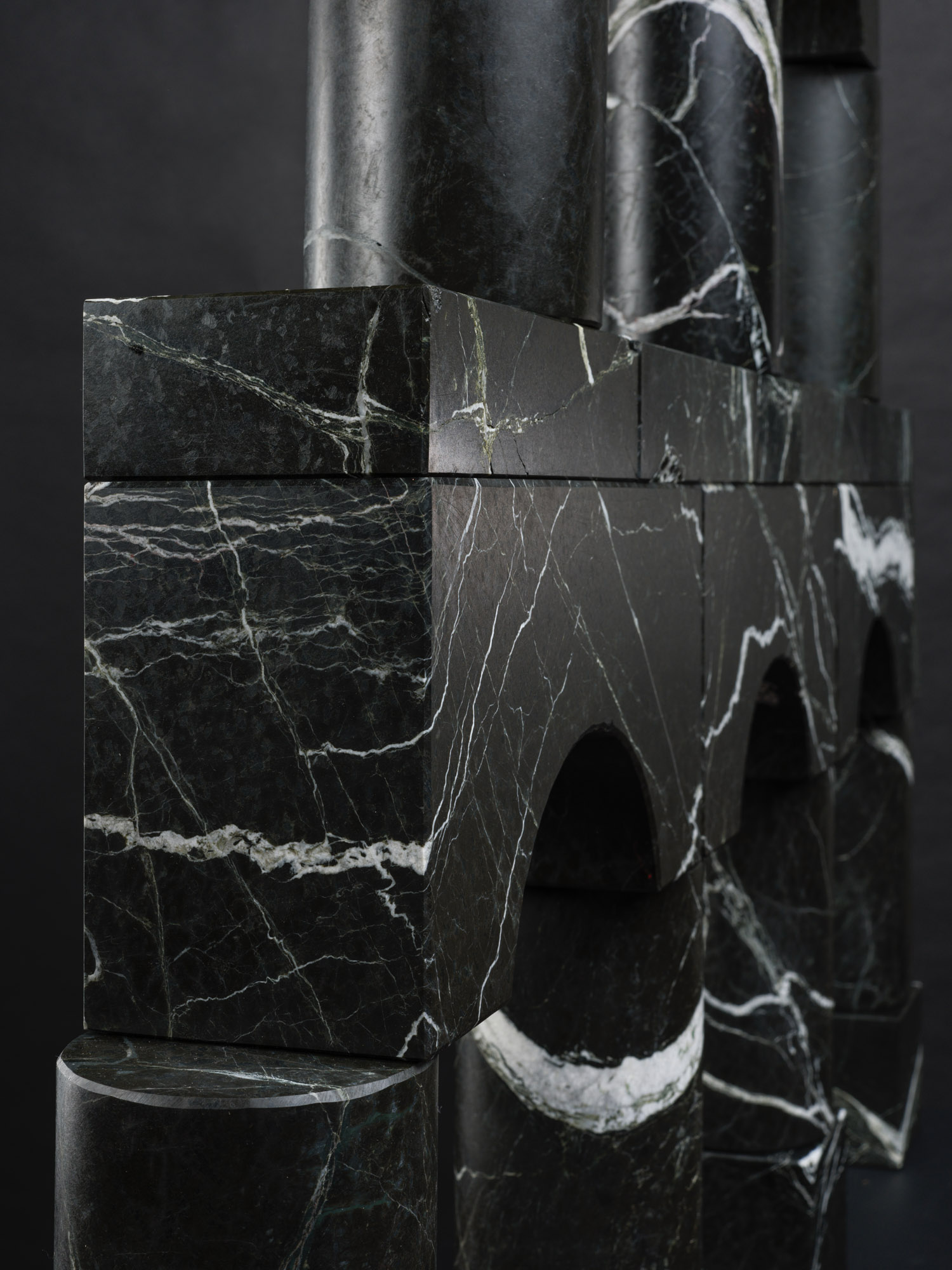 The blocks have been cut and sanded into 25 different basic shapes, based on wooden toy blocks. They are not affixed in any way, but placed on top of each other in a specific building order, based on the artist's instructions, which are included. Any owner of the work is invited to make their own constructions with the blocks.
